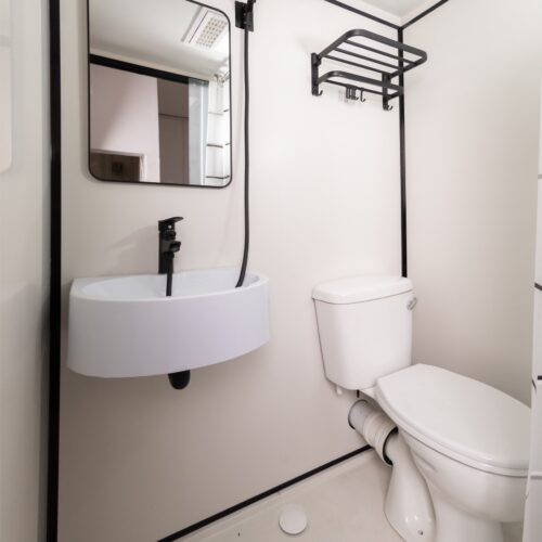 The GEZA Bathroom all in one Pod is a complete, self-contained bathroom solution that combines a toilet, basin, and shower in one compact, stylish unit. Designed for quick installation and easy maintenance, it’s ideal for small homes, cottages, offices, and rental units.